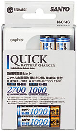SANYO 単3形・単4形兼用 急速充電器セット N-CP4S価格: 2,300円レビュー評価: 0.0 レビュー数:0 サンヨー(三洋電機) N-CP4S [ニッケル水素対応 コンパクト急速充電器セット(Ni-MH 2700/1000 各2個付)] ■単3形ニッケル水素電池Ni-MH2700・単4形Ni-MH1000を急速充電■充電完了後も常時充電「満充電キープ機能」 ■海外でも使えるオートボルテージ※別途変換プラグが必要です。■ニッケル水素電池 単3形2本・単4形2本付き メーカー希望小売価格 4,410円 (税込) 充電器寸法(質量):W70.5・D27.5・H74.5mm(約76g/電池別) ●充電時間(充電表示ランプ付) 適合電池充電時間 HR-3UTG約230分 HR-3UG約310 |